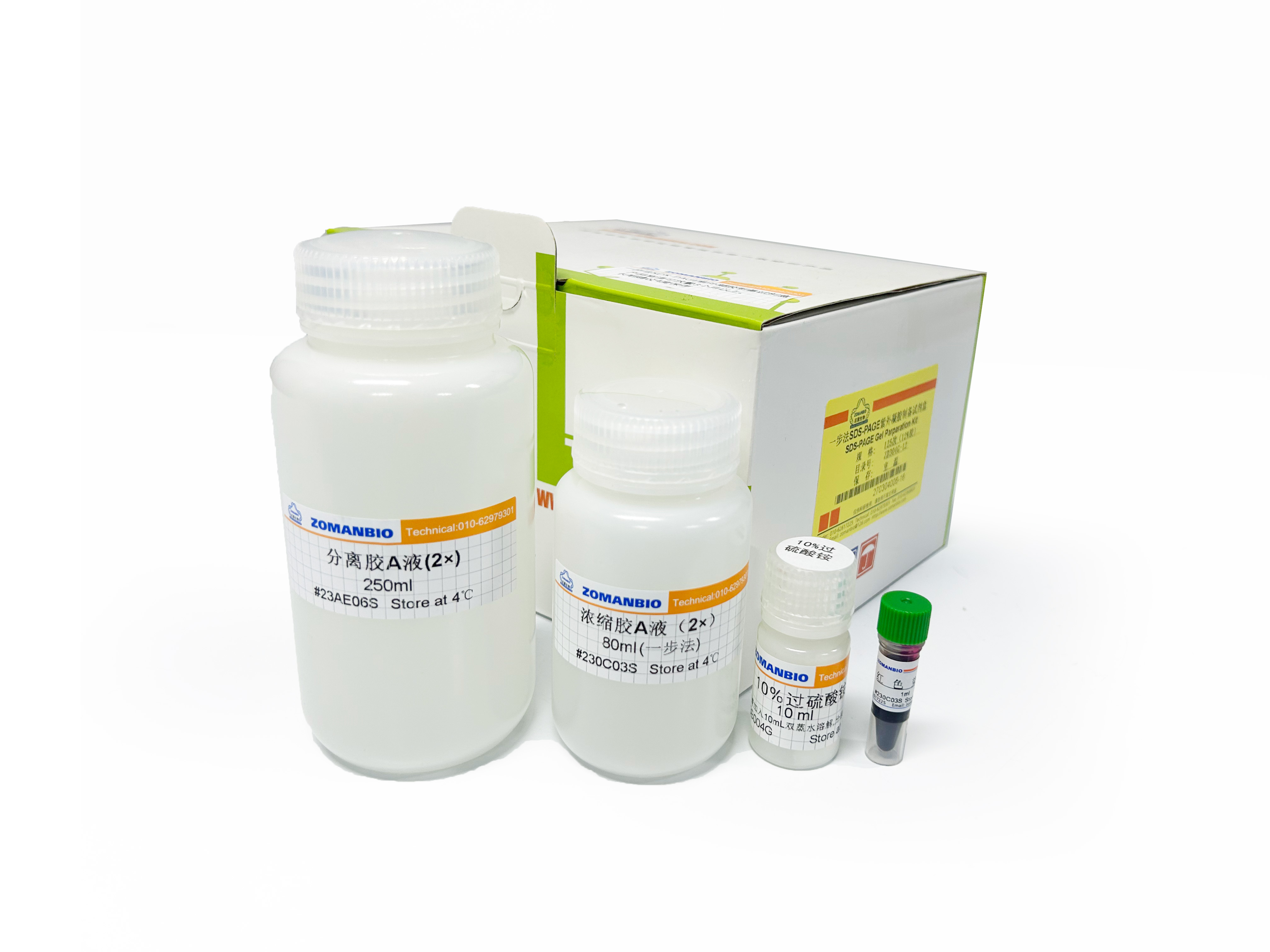 本產品為可紫外照射凝膠快速顯示蛋白條帶的一步法PAGE凝膠的預混配方。產品只需要1:1添加后,再加入催化劑---過硫酸銨,且支持一步灌膠,無需等待分離膠凝固再灌濃縮膠,此濃縮膠可以添加染料,使上樣孔更清晰,方便點樣。制備的凝膠與傳統Tris-甘氨酸電泳液完美兼容,且電泳方法一致。