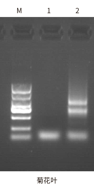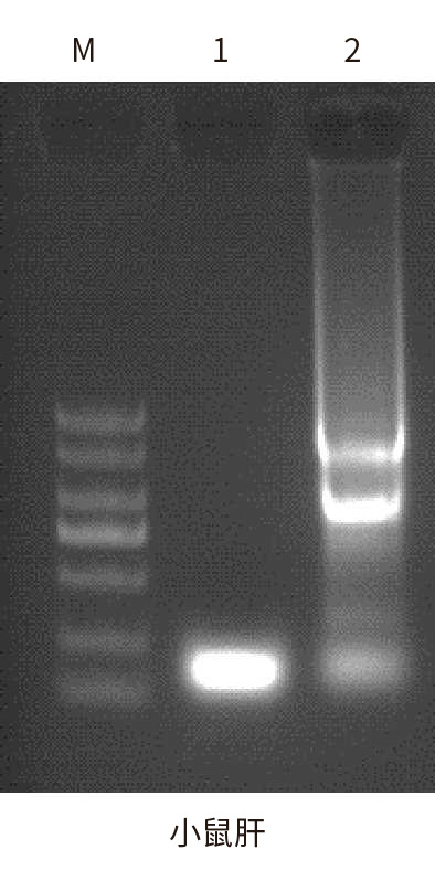 使用MicroRNA提取試劑盒和Trizol分別從等量的菊花葉和小鼠肝組織中提取MicroRNA、Total RNA。如上圖所示, MicroRNA提取試劑盒提取的miRNA不含有大分子RNA,如28S RNA、18S RNA,且5S RNA亮度更高(表明對于小分子RNA的回收效率更高)。