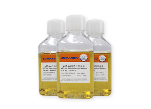 本產(chǎn)品是在 pET 專用生長培養(yǎng)基的基礎(chǔ)上開發(fā)而成的,它利用 E.coli 自身對培養(yǎng)基中不同碳源的調(diào)控利用機(jī)制,實(shí)現(xiàn)外源蛋白在細(xì)菌達(dá)到飽和生長期后的半乳糖啟動子的自動誘導(dǎo)。