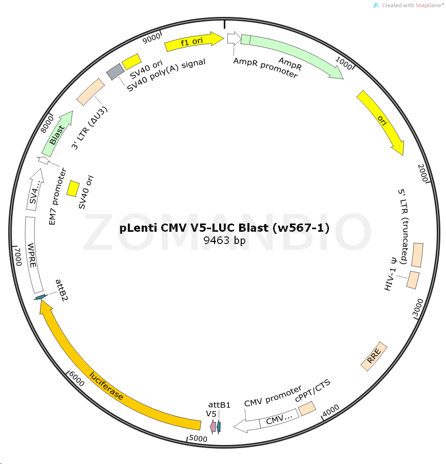 ZK806pLenti CMV V5-LUC Blast (w567-1)慢病毒表達質粒.txt