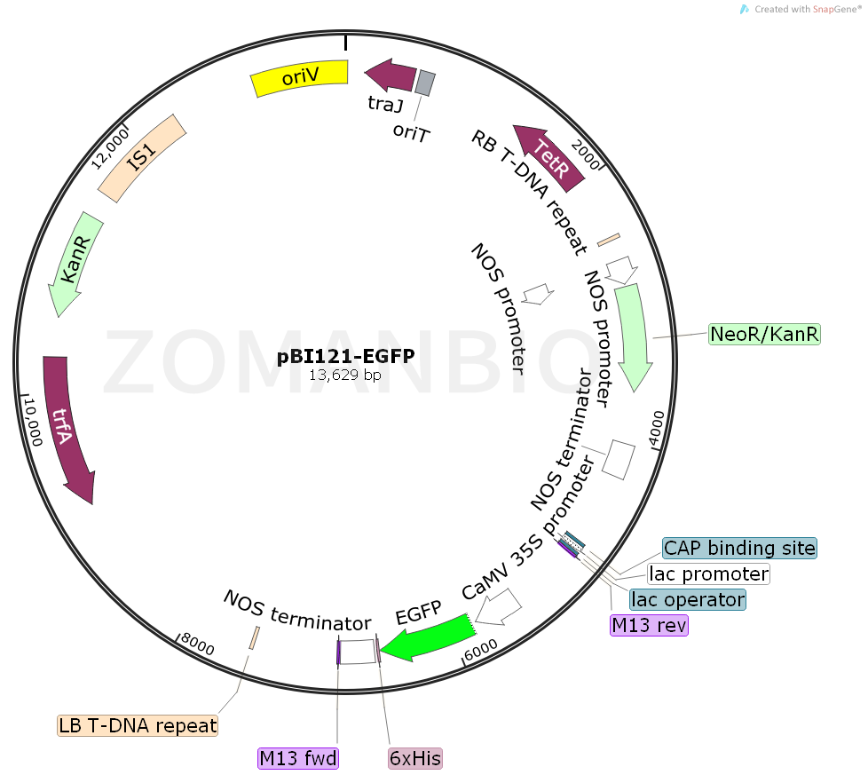 質粒序列請下載:ZK852pBI121-EGFP植物表達質粒.txt