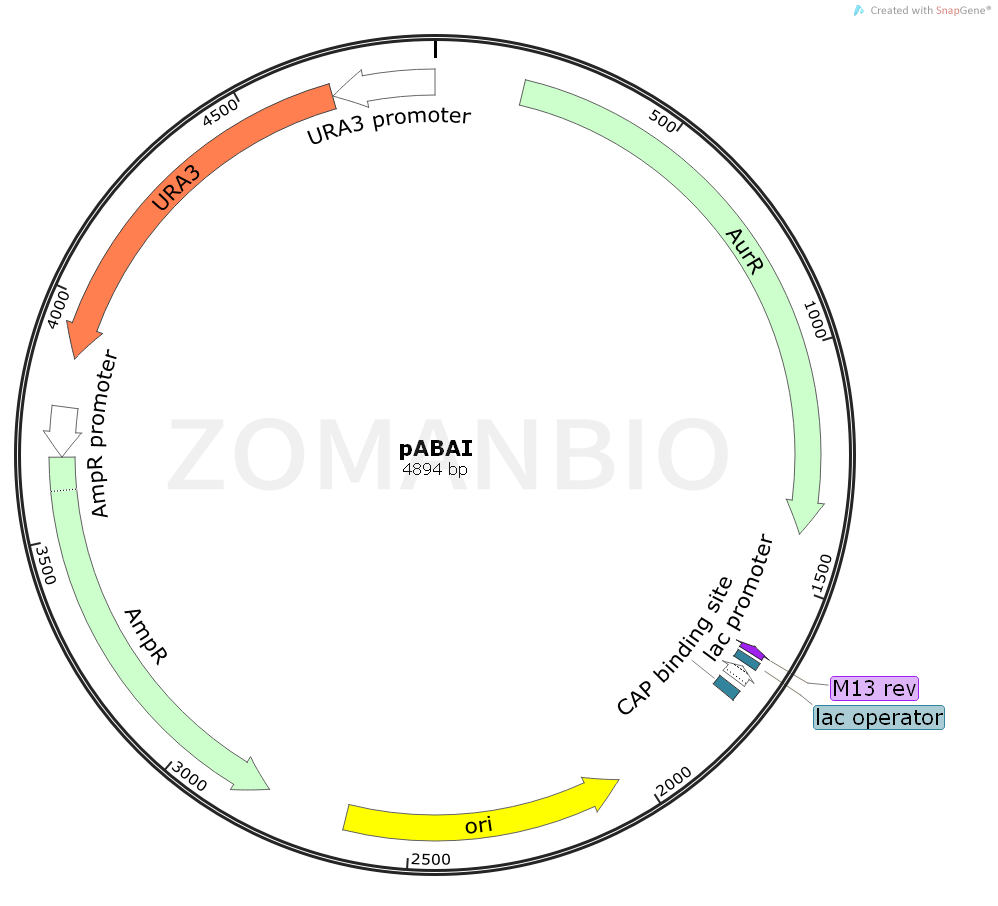 pABAI質粒是一種單雜交酵母報告質粒,可以識別和分析蛋白質與DNA之間的相互作用,而不僅僅是證明蛋白之間的相互作用。這個質粒具有AbA抗性因而具有很強的篩選能力,可極大地降低背景水平。